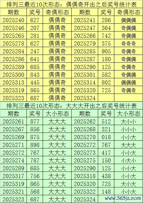 成列三最近10次同期开非凡偶格式:偶偶奇和大小格式:大大大时其奖号分袂为:667-665-885-889-889-889-669-869-685-865-687,下期分袂开出号码为:989-259-757-012-172-894-683-717-125-725,选藏统计见下表: